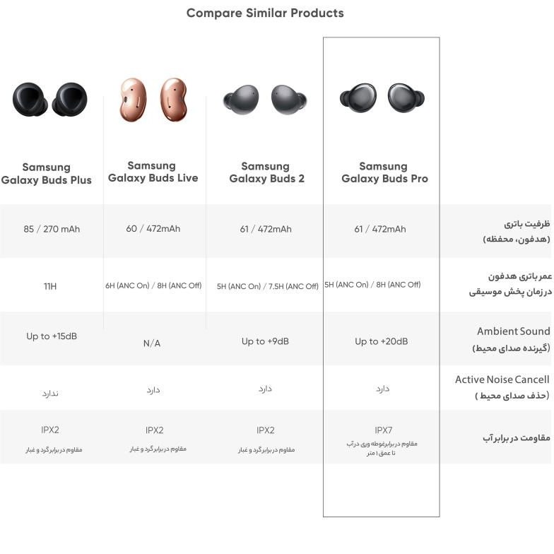 صدای Hi-Fi و 24 بیت، صدای 360 درجه (سازگار با دستگاه های سامسونگ با رابط کاربری One UI 3.1 و بالاتر)، پشتیبانی از فرامین صوتی، کیفیت صدای HD در مکالمه، حالت Ambient Sound برای شنیدن صدای محیط اطراف در حین پخش محتوا، امکان استفاده 55 دقیقه ای تنها با 5 دقیقه شارژ